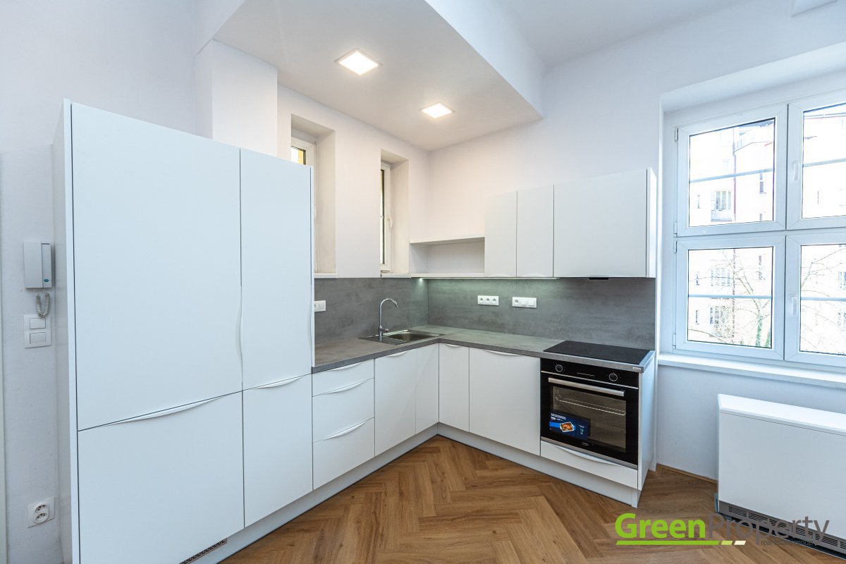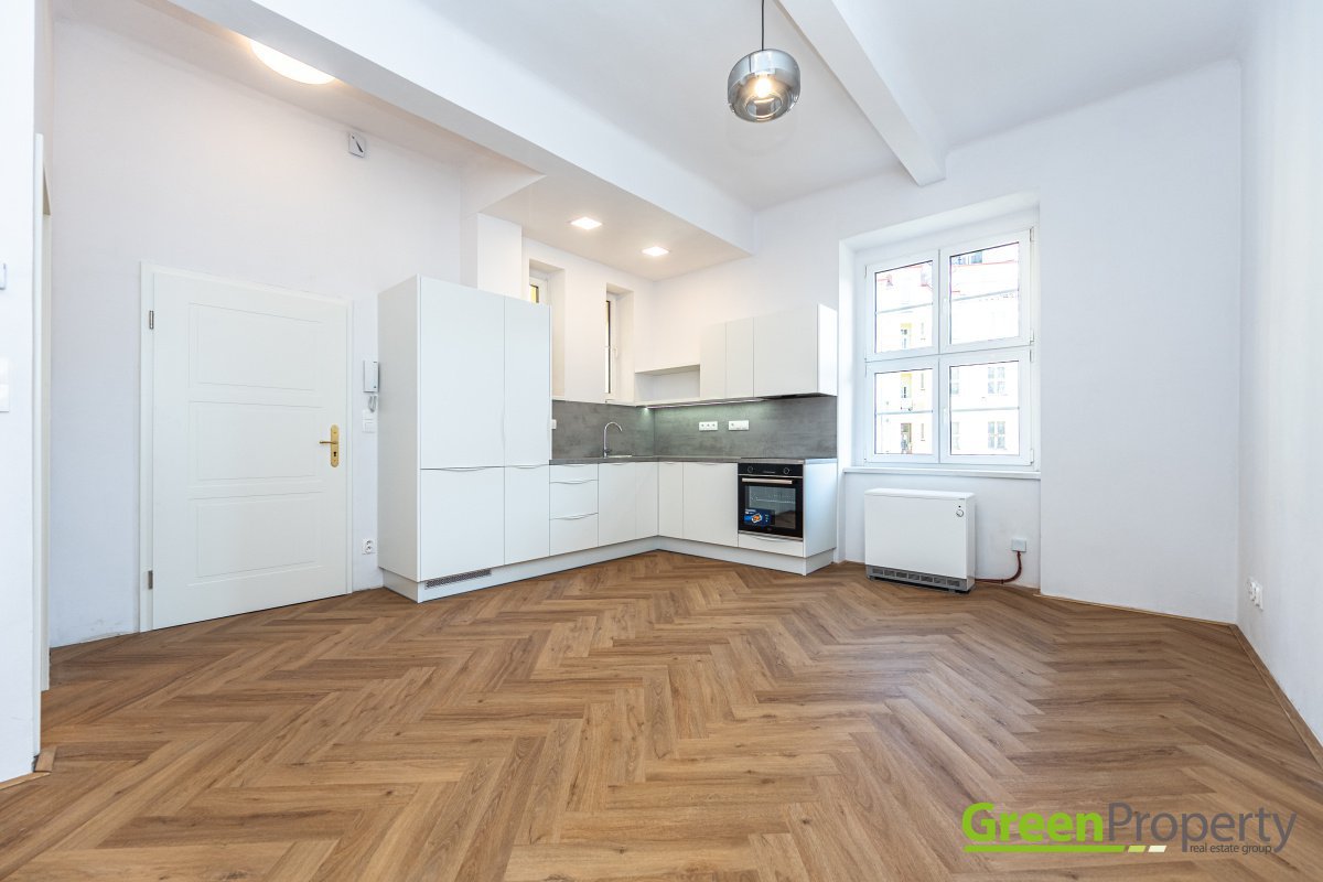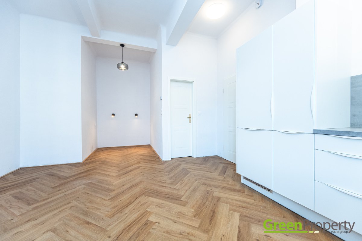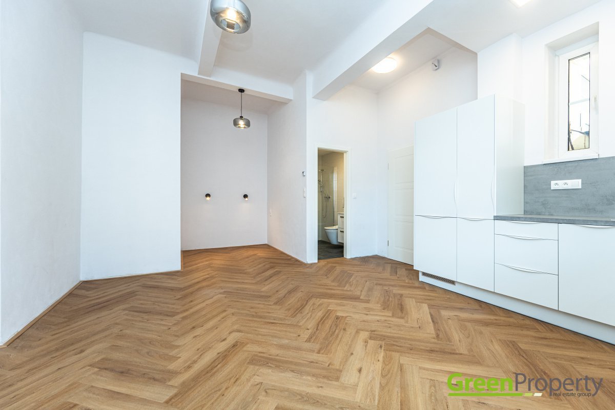 We are exclusively representing the owner to offer for rent an apartment located in the popular Bubeneč area of Prague 6 near Puškin square. This flat has a total area of cca 30 m² and a 1+kk layout, situated on the 2nd floor of a residential building in Uralská street.The layout includes a living area with a fully equipped kitchen, and a bathroom with a shower and toilet. The flat is heated by electrical boiler, has a washing machine, possibility to provide a wardrobe on a request. The building is in very good, well-maintained condition. Unfortunately, we do not have the PENB (energy classificiation) available, so, by law, we have to list it as energy class G.